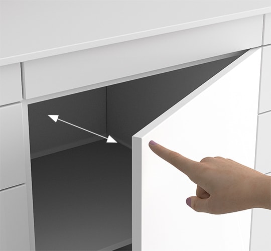 Staublippe am Schrankrand und auf Anfrage auch an allen Schubladen