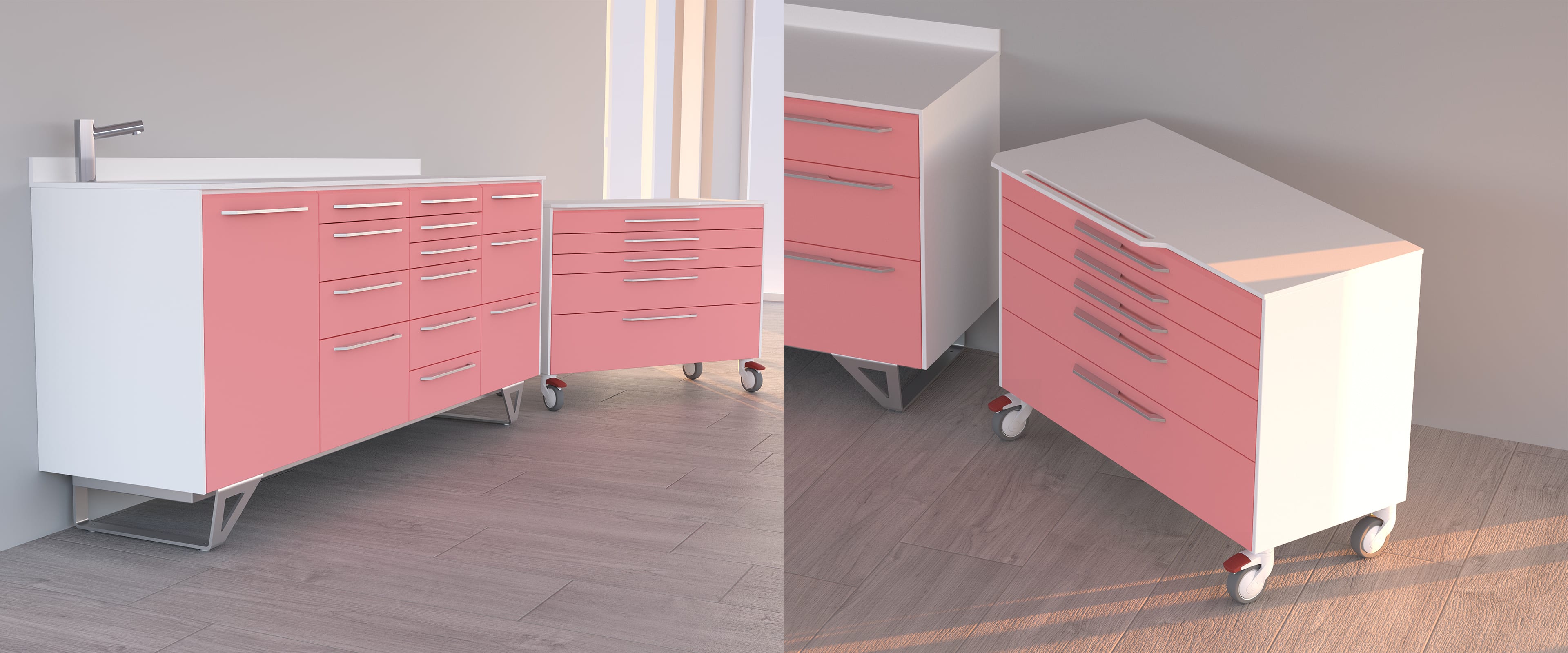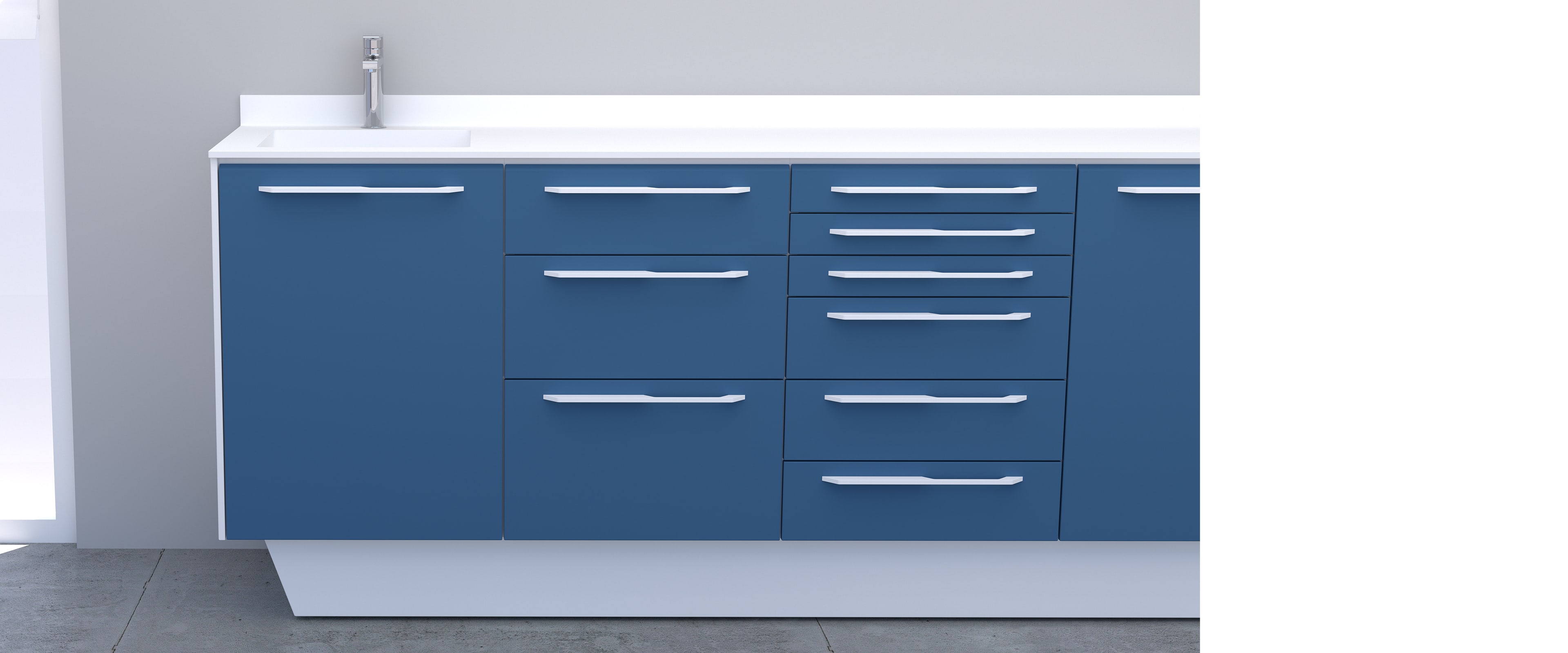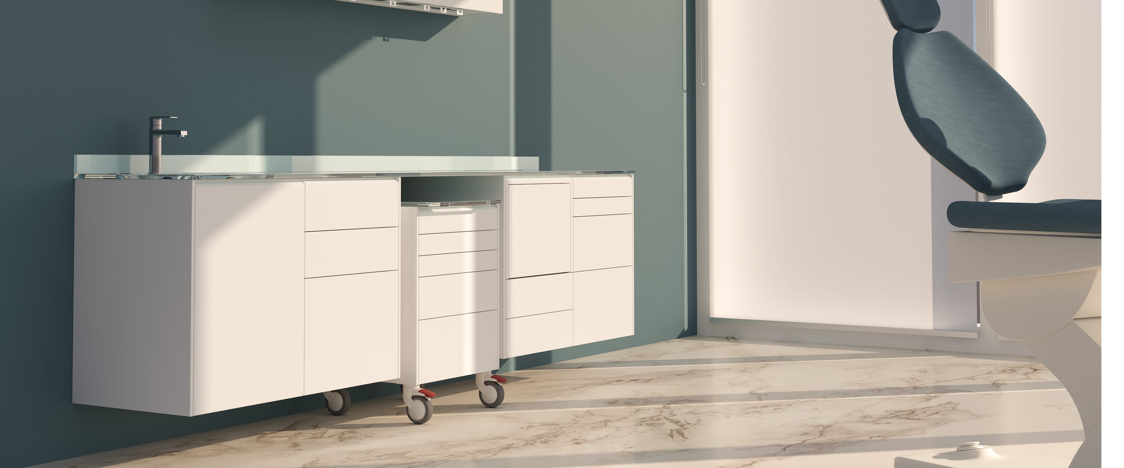 ALTEA ist die neue, ästhetisch innovative und fesselnde Möbelzusammensetzung . Es gibt drei Optionen für die Halterung: Wandbefestigt, Bodensupport auf Stahl oder geschlossener Sockel. Die umlaufende Staublippe kann nicht nur die Module, sondern auch, auf Anfrage, jede einzelne Schublabe umgeben. Der abgestimmte Rollwagen ist besonders funktional. Ein originelles und charakteristisches ästhetisches Detail ist die Neigung des oberen Teils der Schubladen und der Tür.