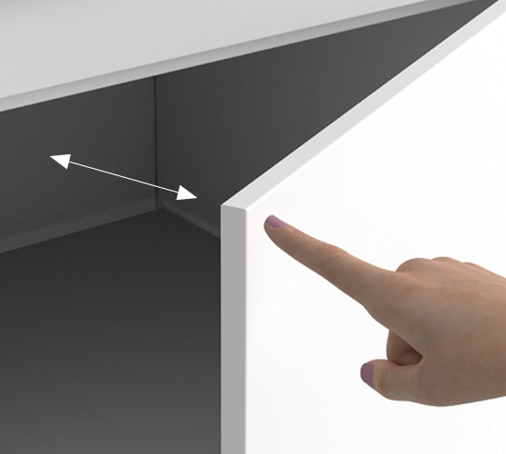 The innovative space-saving system allows for the integration of the multi-functional devices with an upper opening within the body of the furniture composition, this allows the worktop with tilting function to be free.