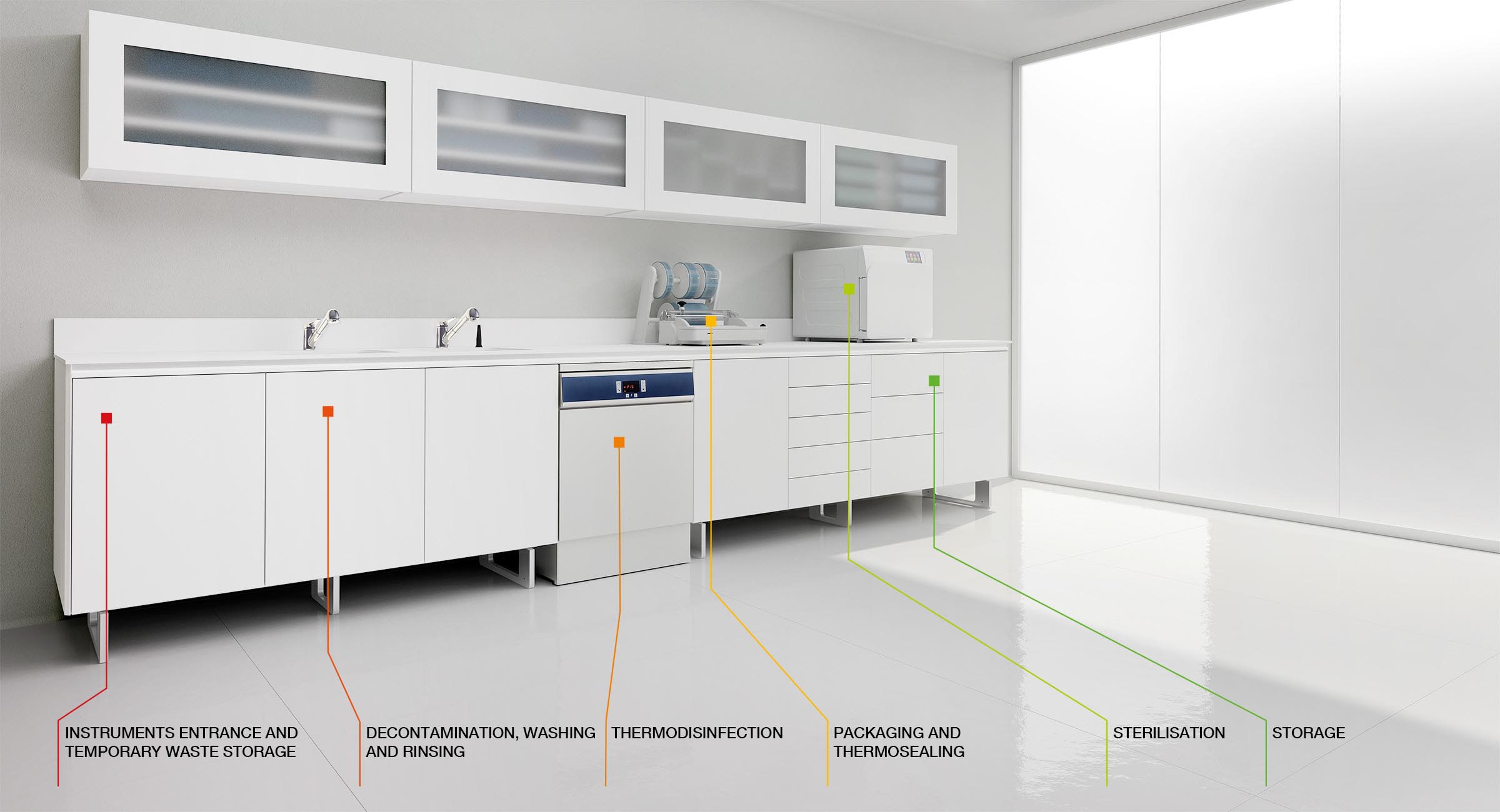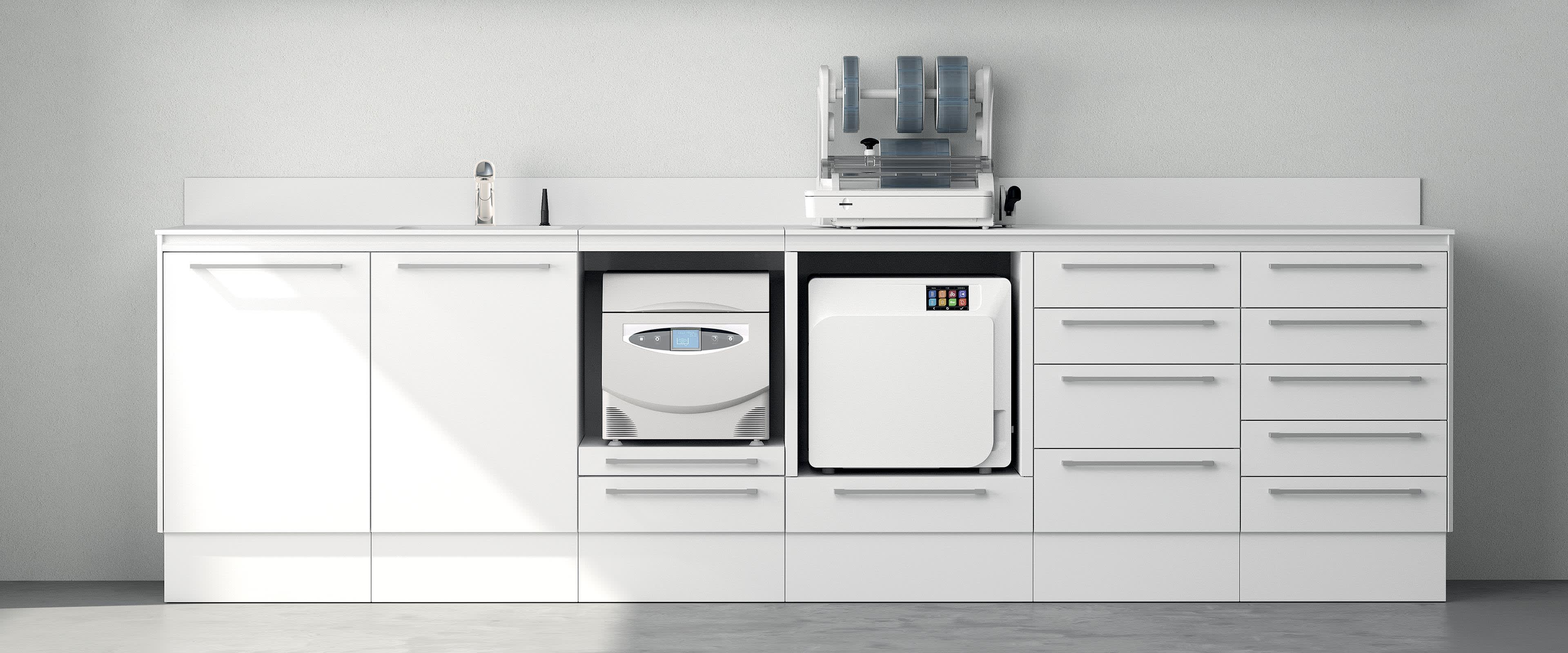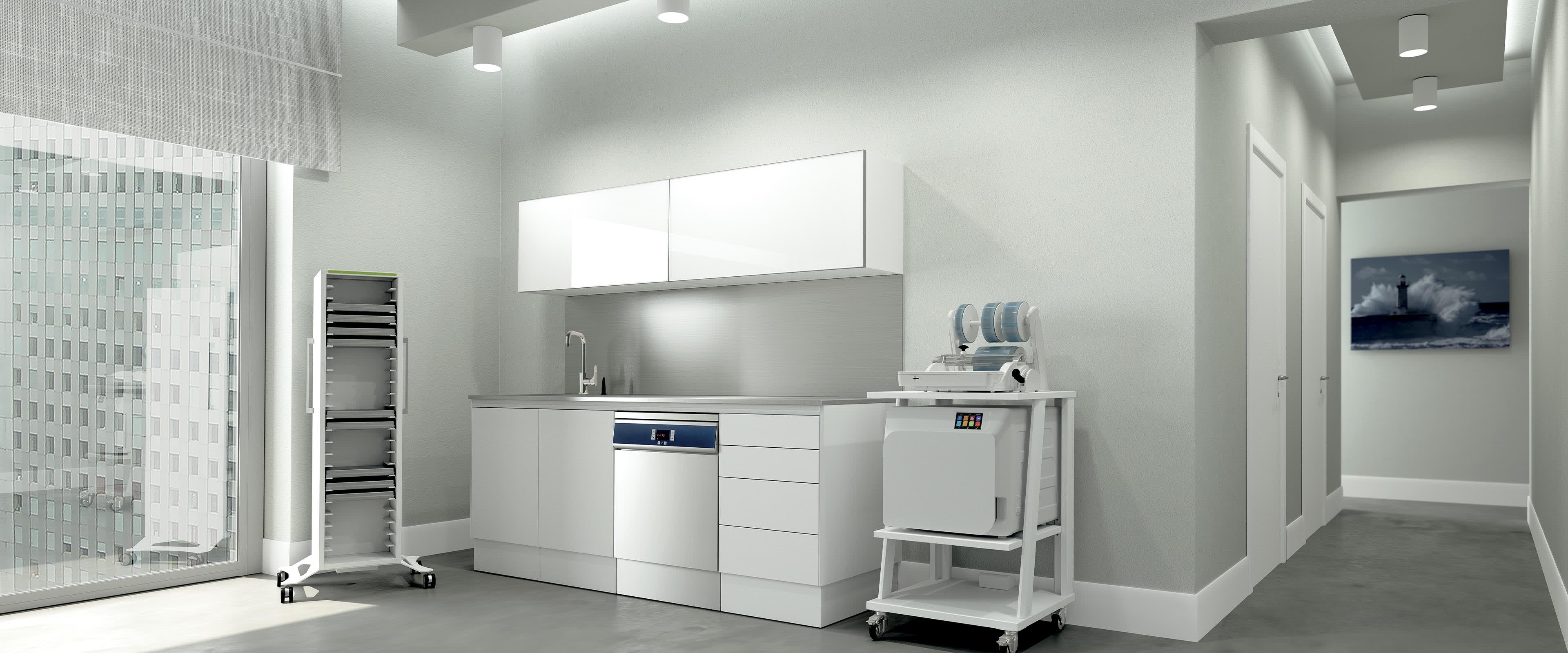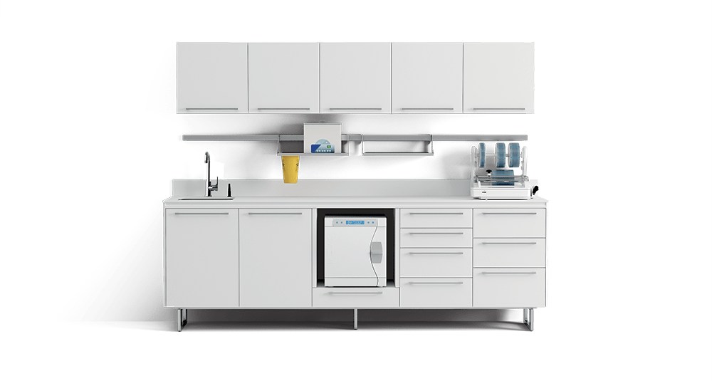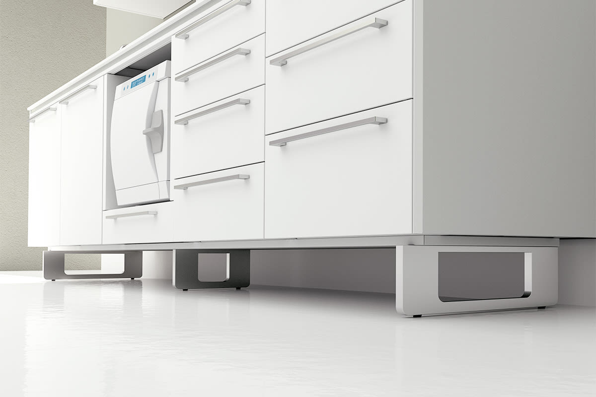 Enthusiastically following the best Italian design traditions, ZILFOR has created a new range of sterilizing tools and products to use in the management and treatment of infected materials. In order to protect patients and healthcare workers alike, special attention is paid to environmental decontamination and equipment sterilisation. The flip-up top means that a range of multi-functional devices can be housed within the main body of the composition, with an innovative space-saving system. Last but not least, there is a choice of an elegant closed base or the convenience of aluminium feet which facilitate cleaning under the unit.